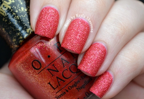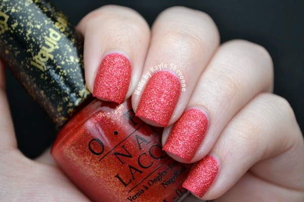 Magazine Cover Mouse is another of OPI's Liquid Sand shades, which as you might know, I'm a big fan of. This one is a red-orange with lots of gold and fuchsia microglitter. It's similar to OPI Jinx from the Bond Girls Collection, but much more red. The formula was amazing and I've shown two coats below.