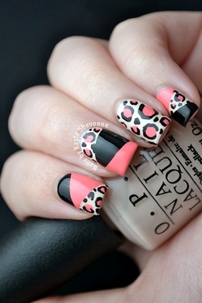 Leopard Print Colour Blocking Nails
