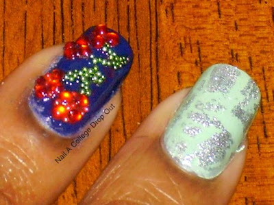 And Sally Hansen Extreme Wear Mint Sorbet and Icing Shattered Glass for the other nail.