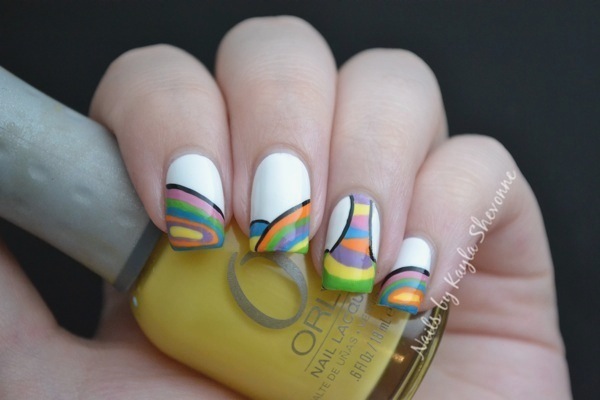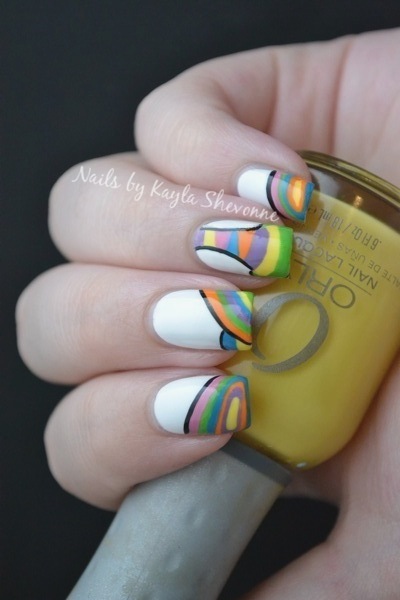 The base colour here is Wet 'n' Wild French White. The colourful stripes/blocks were done using a number of polishes, so I'll just list them for you.