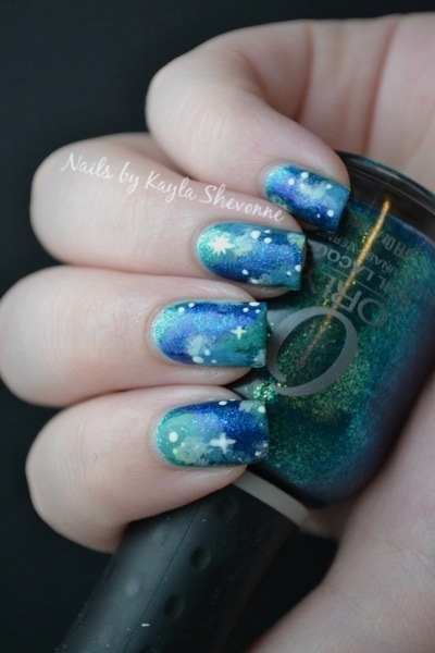 On my pinky nail, the green gradient (which I think is my favourite one) is done using OPI Jade is the New Black, China Glaze Gaga for Green and China Glaze Re-fresh Mint.