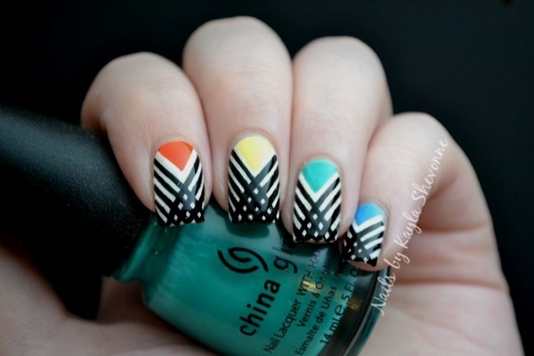 Today's design is inspired by a tutorial, and this one was hard to narrow down because there are so many great nail artists out there! But in the end, I went with the very bold "Have I Crossed the Line?" design by Melissa over at The Daily Nail.