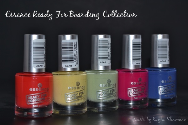 Before I post my inspired by a movie nails, I have the polishes from the limited edition Essence Ready For Boarding Collection to show you! There's five polishes in this collection - all of which are of the creme variety.