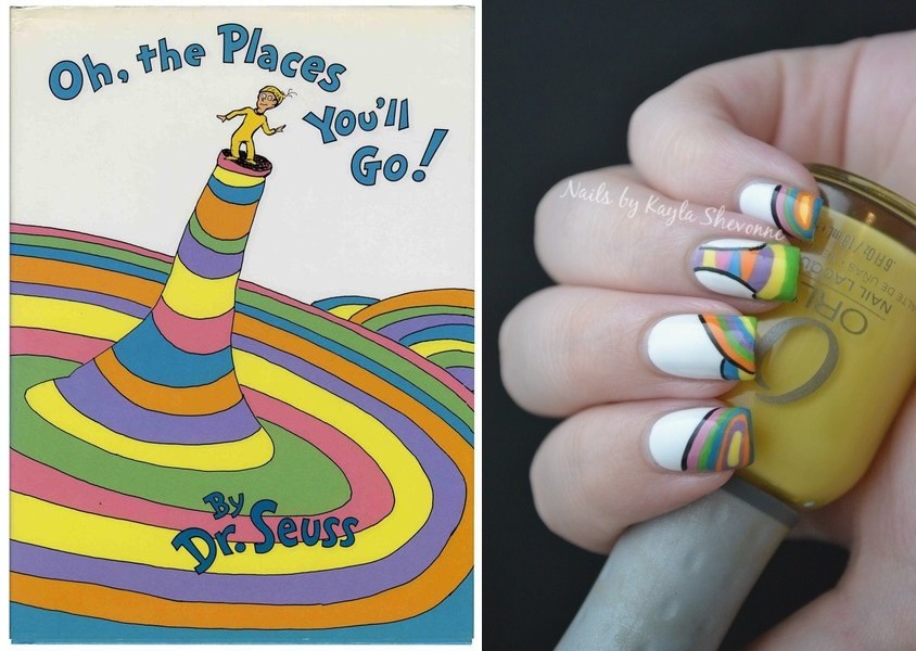 Today's prompt is to create a nail design inspired by a book. I've known all along which book I was going to use as inspiration for today - it's Oh The Places You'll Go! by Dr. Seuss. For me, this is one of the most significant and poignant books that I've ever read.