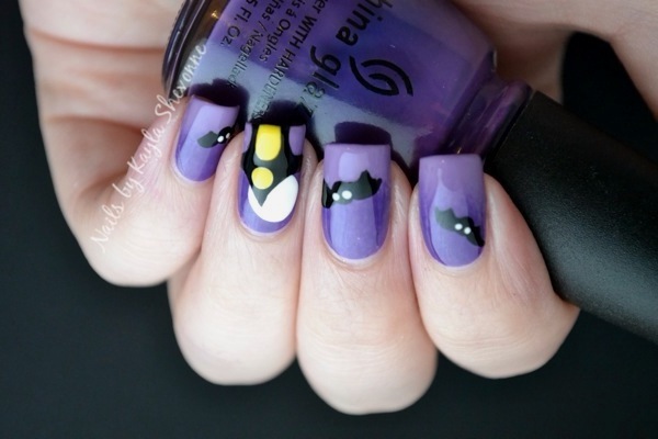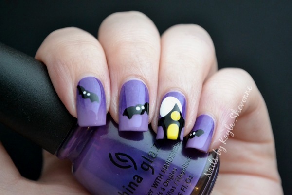 Finally, I thought the non accent nails were looking a little plain, so I added some simple little bats.