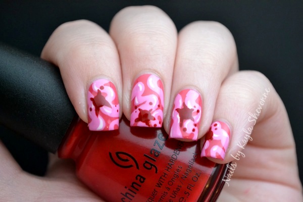 Today's nail art is a simple stamping design that I whipped up just to have something on my nails yesterday. But I did end up liking it more than I anticipated!