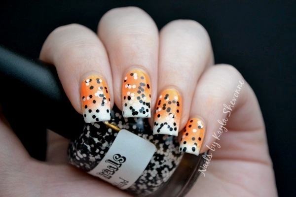 I found this cool image on google of a polka dot pumpkin and I thought that it would translate really well into a nail design. The pumpkin even has a K on it, so it was totally meant to be used as inspiration for me!