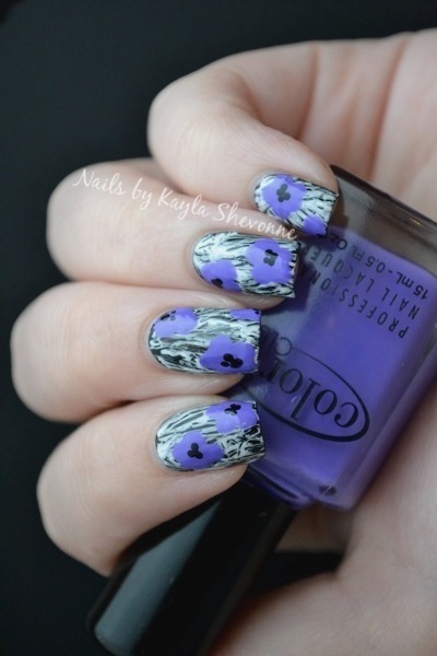 I don't own the same black and white that Rebecca used, but that was no biggie since all black and white cremes look basically the same. I do own the same purple though (Color Club Pucc-licious), so I was able to easily replicate the colouring of her mani.