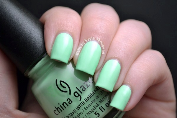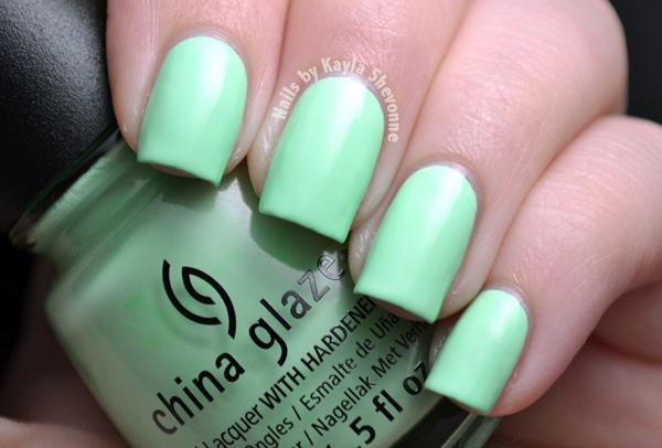 This one is a favourite of mine colour-wise (it's like a neon version of China Glaze Re-fresh Mint, one of my favourite pastel polishes ever), but one of the worst formula-wise. It applied unevenly and didn't want to self-level. I suggest applying thin coats and waiting a minute or two in between coats so that you don't experience any dragging. I've shown three coats below.