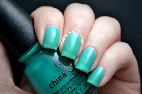 Highlight of My Summer is a vivid mint green creme. My skin colour looks a little off in these photos because my camera really didn't like this polish. I had to do some colour correcting to get the polish to appear accurate, which distorted my skin colour. But the polish is accurate, which is what's most important.