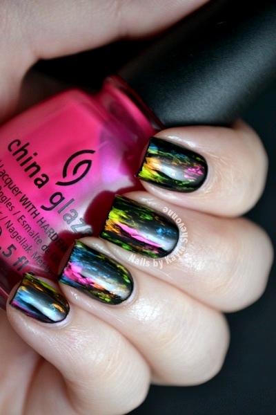 DeleteI love this look! Those neons under the black look like foiled glass.