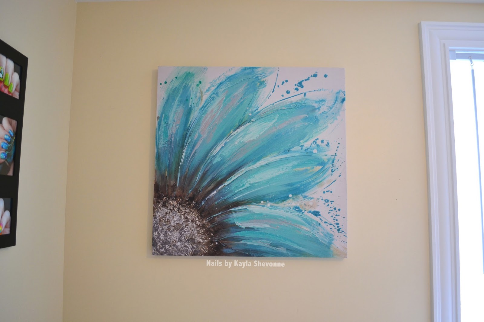 The art on the back wall hasn't changed since the last post. I have two collages of photos of nail art designs that I've done, although I can't really take credit for this idea because my friend Rebecca from Rebecca Likes Nails actually gave me one for Christmas in 2011! Sadly, it got damaged when we were moving so I had to recreate it myself, and in the process I decided to make another. I'm actually thinking that I might repaint the collage frames white so that they tie in better with the colour scheme of the room.