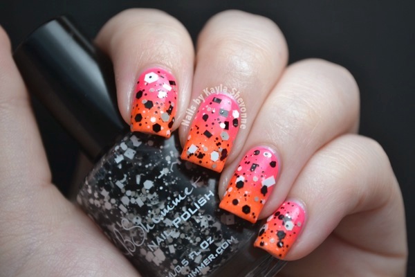The shades include Splish Splash, I'm With the Lifeguard, Orange You Hot? and Sun-Kissed. Finally, I outlined the spots using China Glaze Liquid Leather and a small nail art brush. A coat of Seche Vite finished everything off.