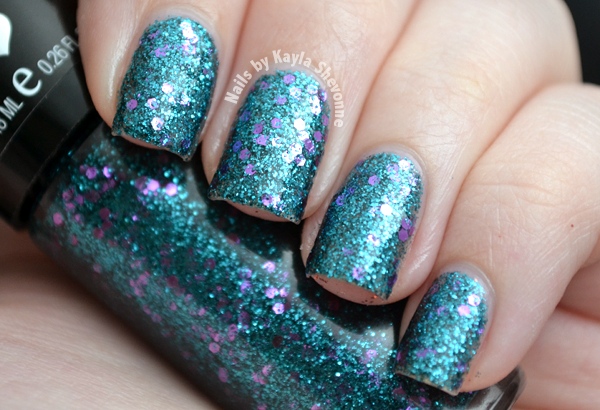Mermaid Magic features bright teal hex glitters with larger purple hex pieces throughout. Turquoise and purple - no surprise that this one is my favourite of the bunch. The formula was pretty easy to work with and my swatch shows three coats.