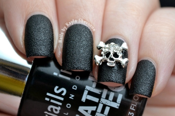 Anyways, Noho comes in a kit called Bling It On: Rebel that contains the polish (obviously), a few different varieties of rhinestones and studs, four crystallized skulls, a bottle of nail glue as well as a couple of orange wood sticks. I probably could have done without the glue, sticks, rhinestones and studs, but I'm really loving the little skulls. Luckily they're reusable so you don't have to throw them out after using them in a mani.