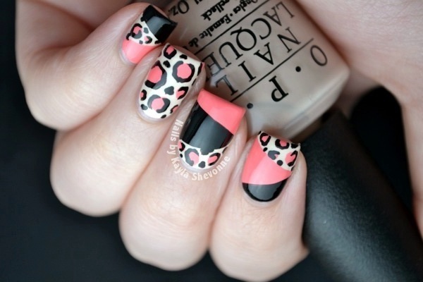 Leopard Print Colour Blocking Nails