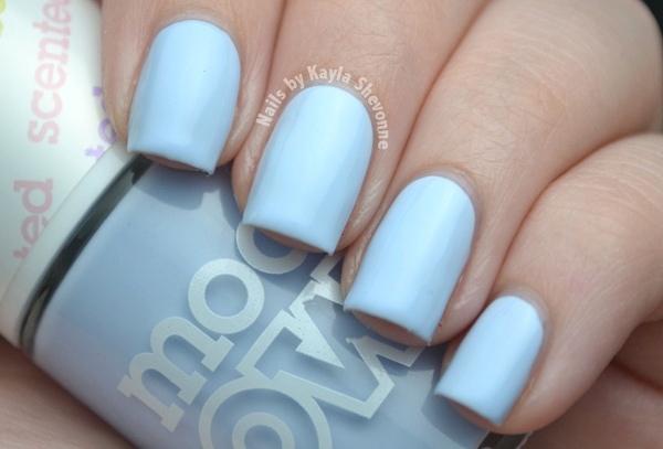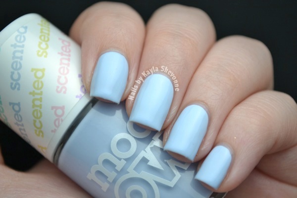 Blueberry Muffin is a light sky blue creme. The formula of this one was better than the first two, although still finicky and a bit patchy. I used three coats for my swatch. The scent is a light blueberry one, although not necessarily blueberry muffin-y.