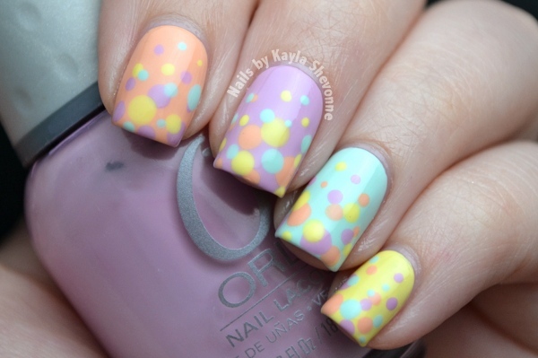 Ever have one of those days when you want to wear totally awesome nail art but don't actually want to do said nail art? I had one of those days recently. I really wanted to have some cool art on my nails, but I was also feeling pretty lazy. The two don't really go together that well. So I settled for a happy medium with some pastel polka dot nails! There's still pretty art, but it was quick and easy, which satisfied my laziness that day.