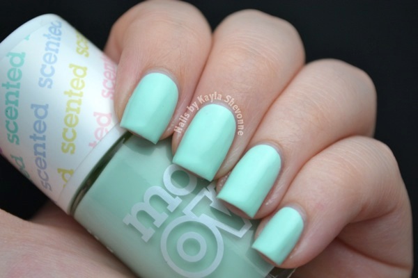 Apple Pie is a light mint creme. This is a really pretty colour that's right up my alley, although the formula left something to be desired. It started off patchy, which can be the case with a lot of pastel cremes, but it continued to be patchy after each additional coat. On top of that, it didn't self-level very well. Needless to say, it took some work (and three coats) to get a smooth and even finish. I wouldn't say the scent reminds me of apple pie, it's more like a light green apple scent.
