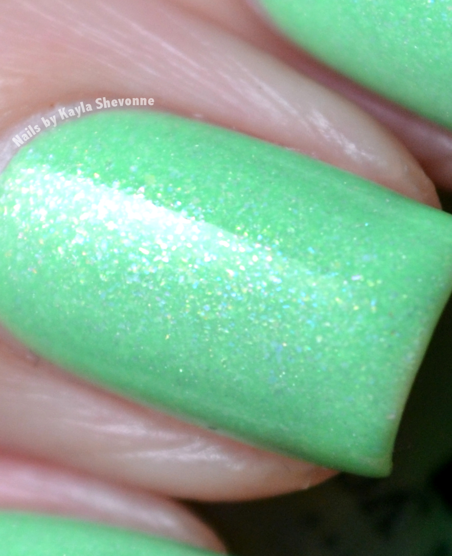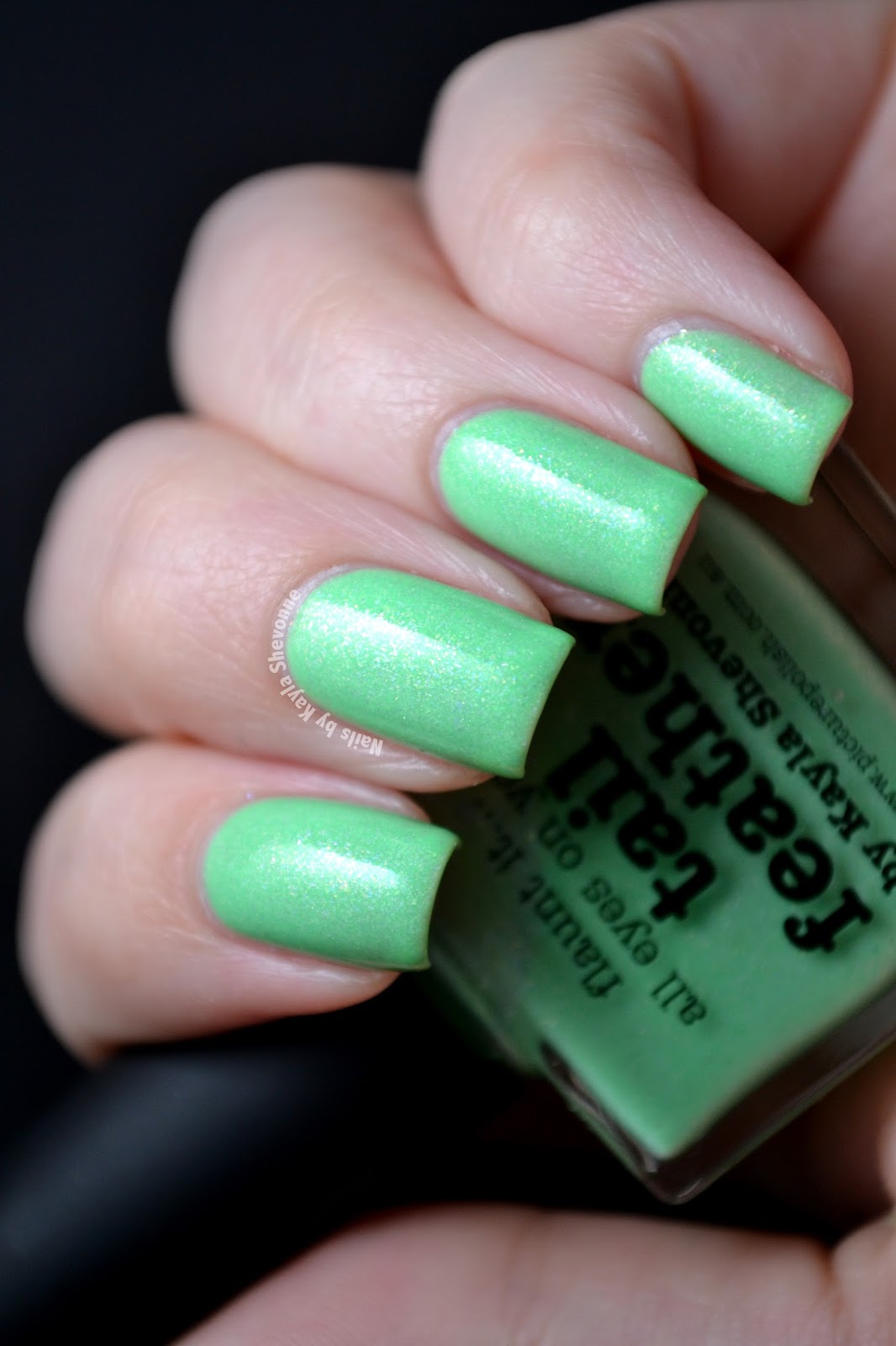 Tail Feather is a bright, borderline neon shade of green that's packed with lots of blue, purple, pink, green and gold shimmer. The shimmer isn't your typical shimmer, instead each particle is like a tiny micro-flake. The piCture pOlish gals called them "sparks" and I think that's the perfect description!