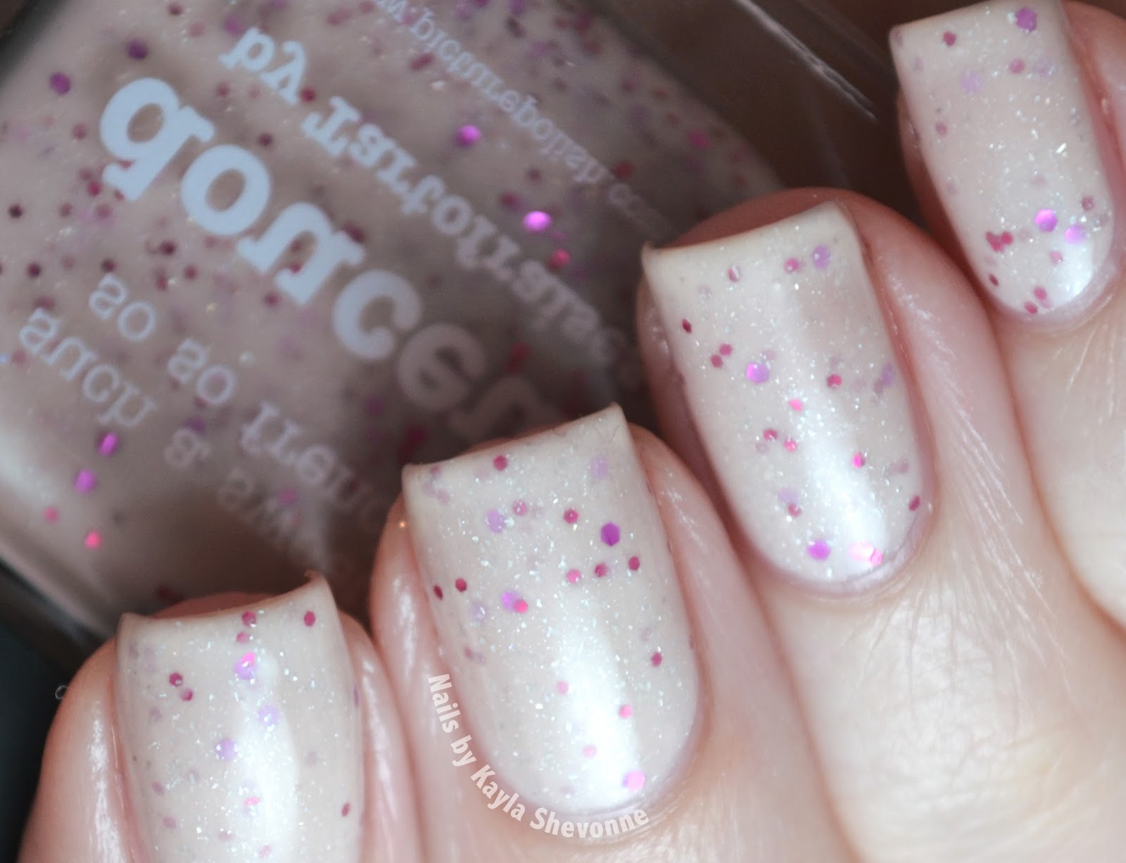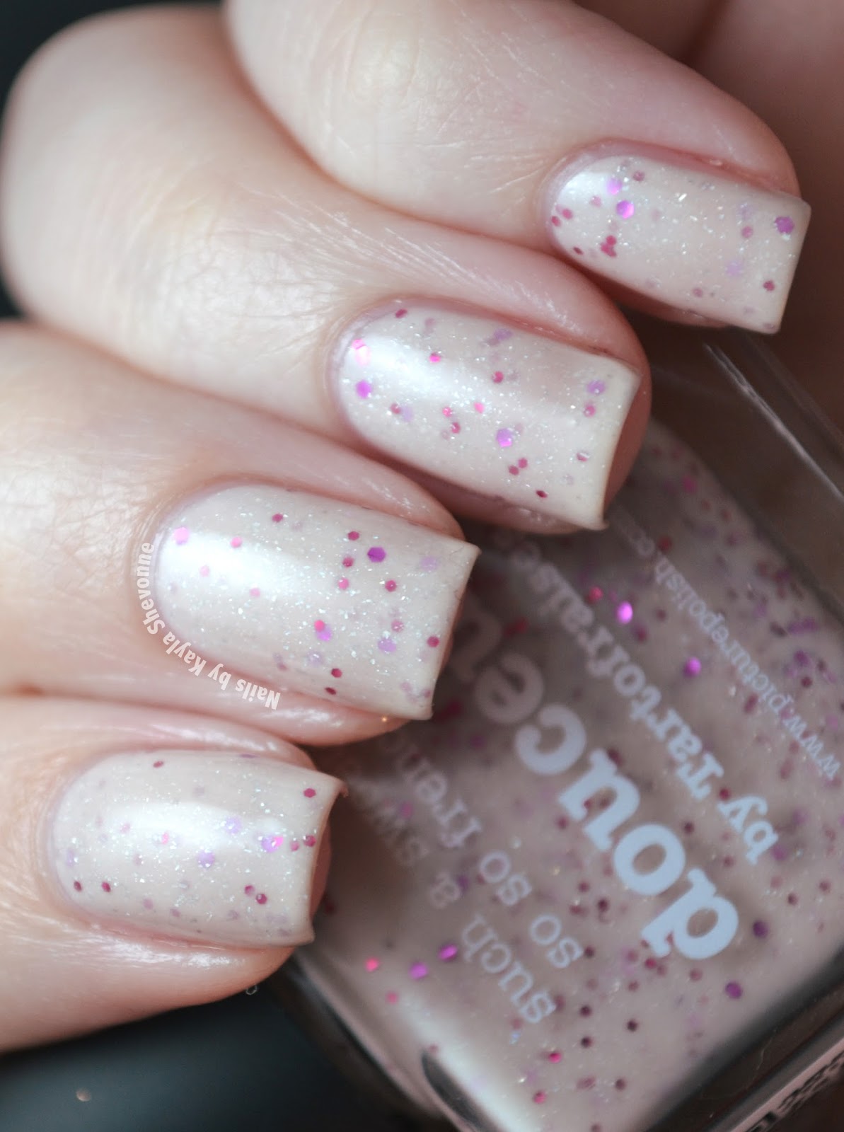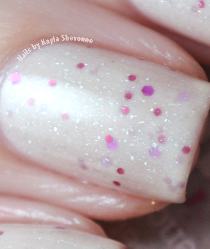 Douceur is a nude-pink jelly base with fuchsia and magenta hex glitters and the classic piCture pOlish holo micro flakes.